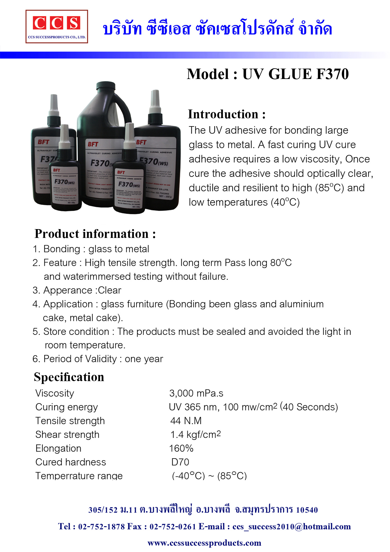 หมวดหมู่ | F370รหัสนี้ เป็น กาวยูวี สำหรับ กระจก กับคริสตัล กระจกกับสแตนเลส กระจก กับไม้ |