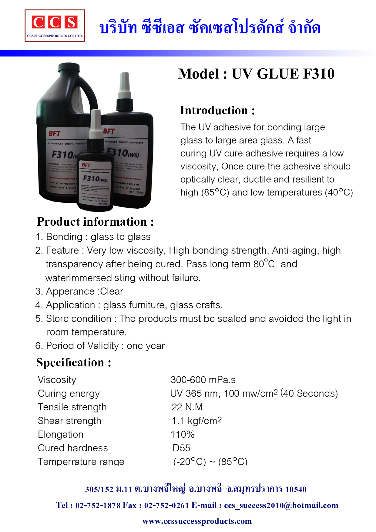 หมวดหมู่ | F370รหัสนี้ เป็น กาวยูวี สำหรับ กระจก กับคริสตัล กระจกกับสแตนเลส กระจก กับไม้ |
